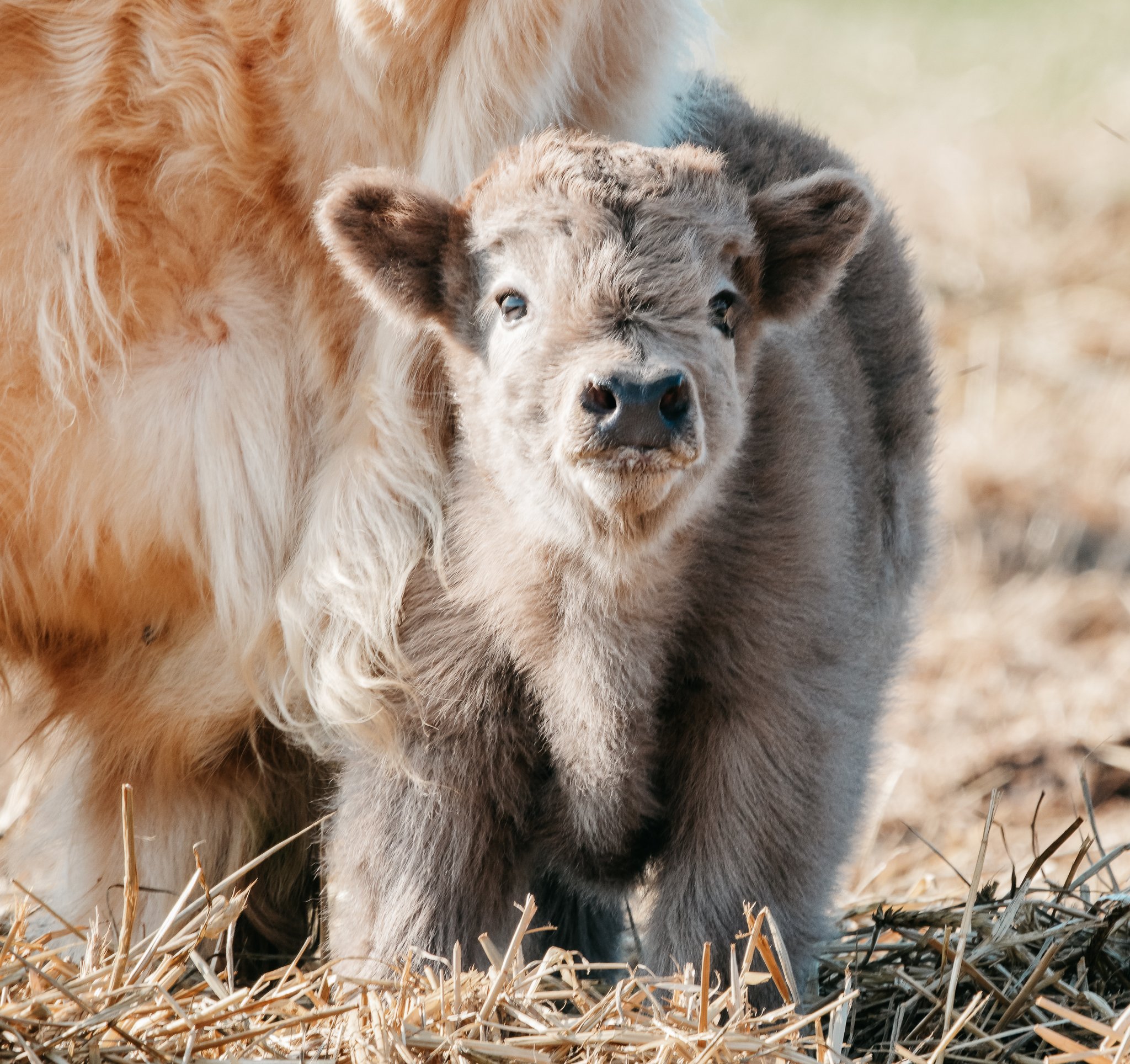 Welcome to the world, Cider! Cider was an embryo baby born on 9/26 to Charley x Josie! Cider is a beautiful dun bull calf that is presumed non-chondro (test pending). Cider is 87.5% highland and has the highland characteristics that we love! Cider will be ready for his new home at weaning in the February timeframe.