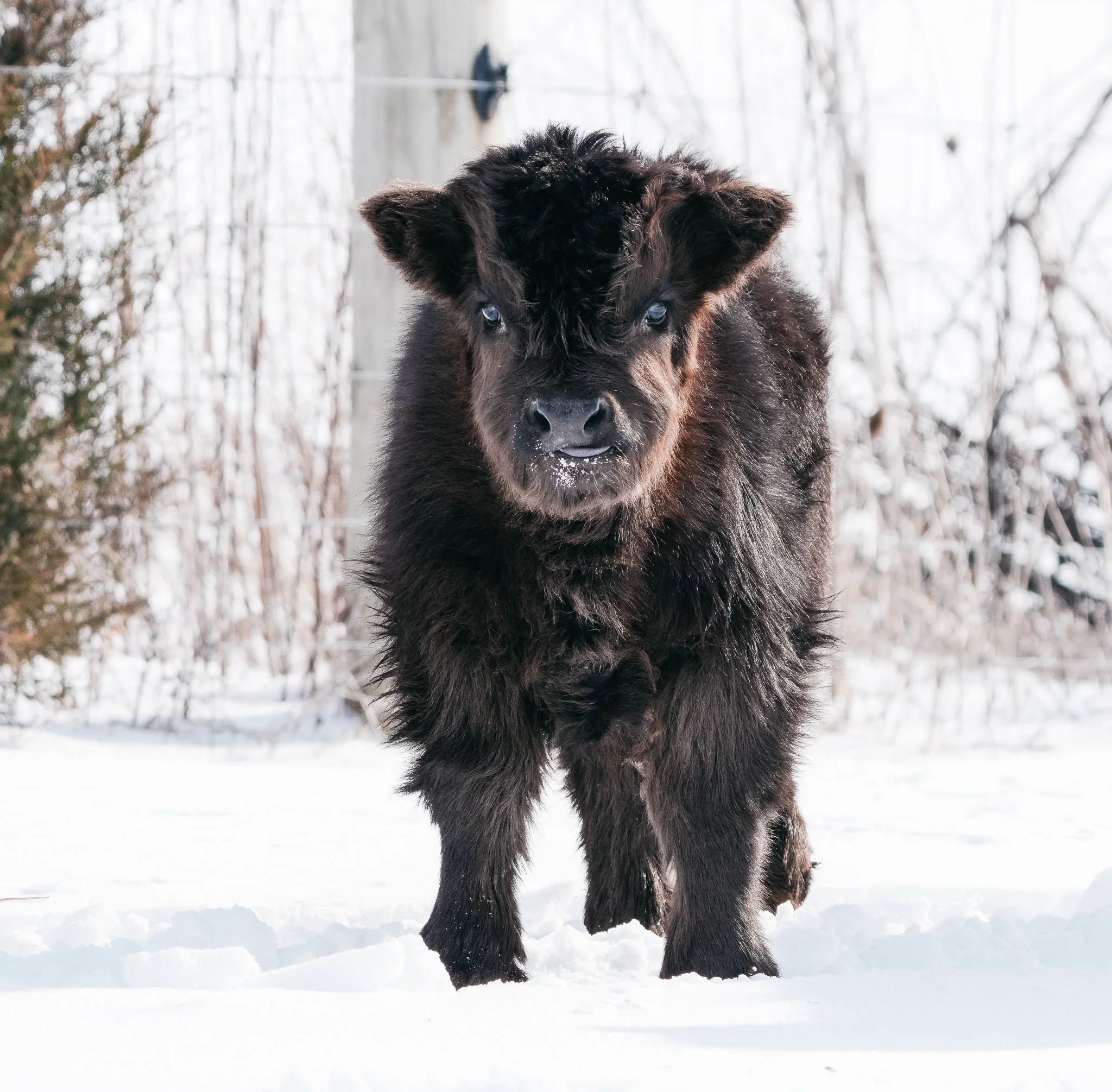 Welcome to the world, Dasher! Dasher was born on Christmas Eve Eve at 20.5” tall. Dasher was an embryo baby from a Romeo x Pansy pairing. He is 75% highland, silver, and chondro positive! Romeo throws very small calves and this guy was no exception. We are very excited to add Dasher to our bull line-up as a potential herd sire prospect in 2028.