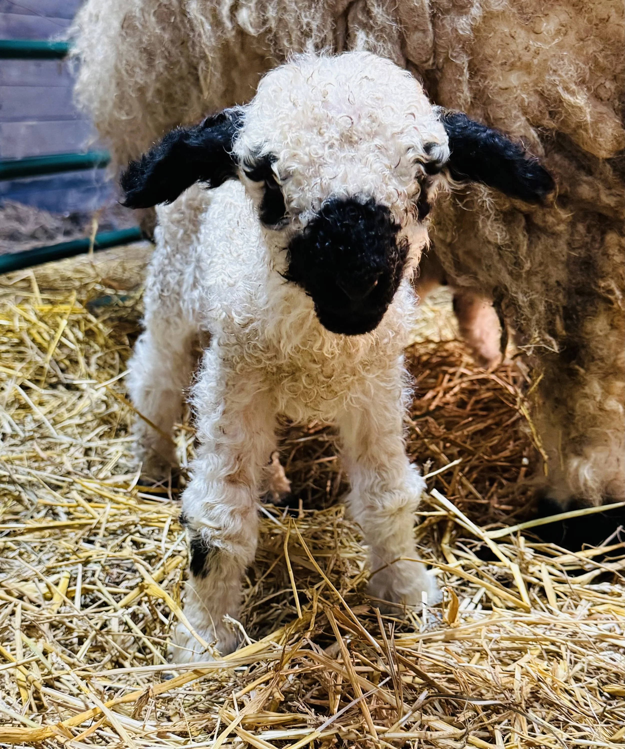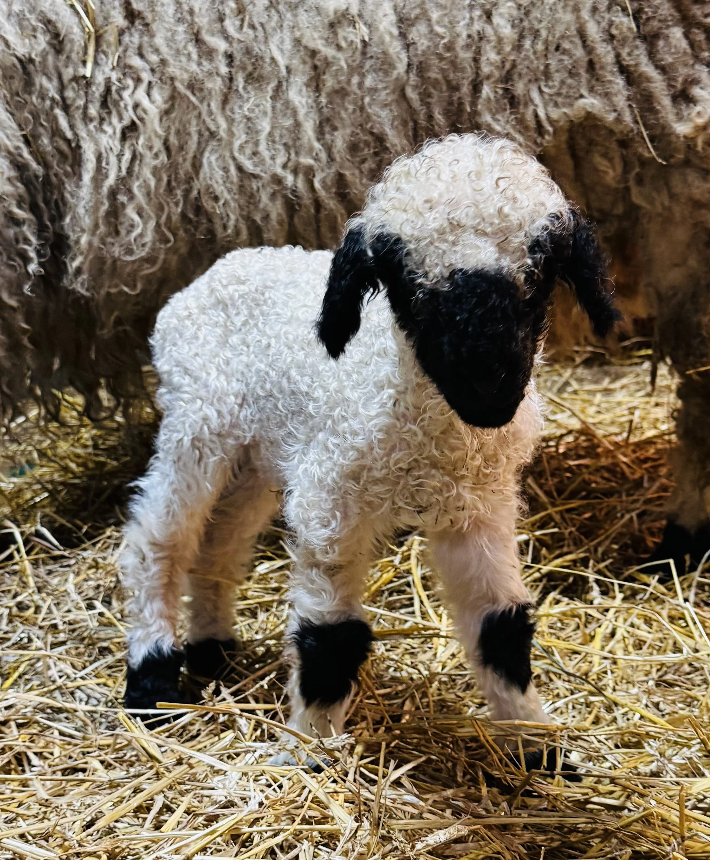 Welcome to the world, Nate Jude! Nate was born on 3/2 to mama Joy. Nate Jude is an F3 (75%) Valais Blacknose Sheep with the most perfect markings and curly hair. He will be ready for weaning in June.